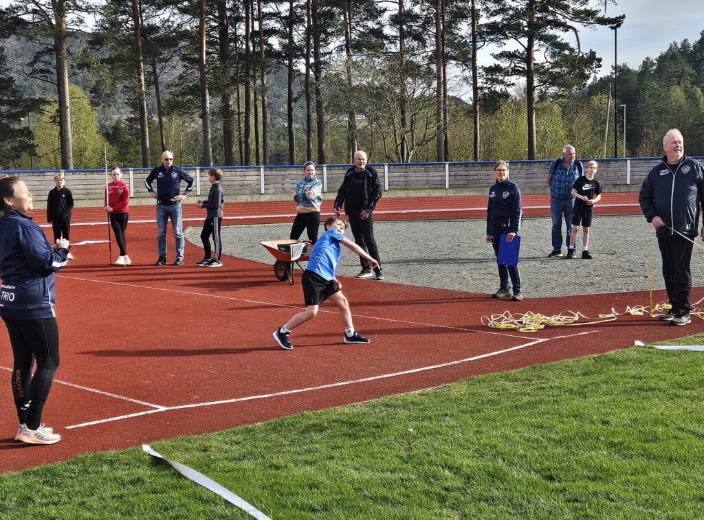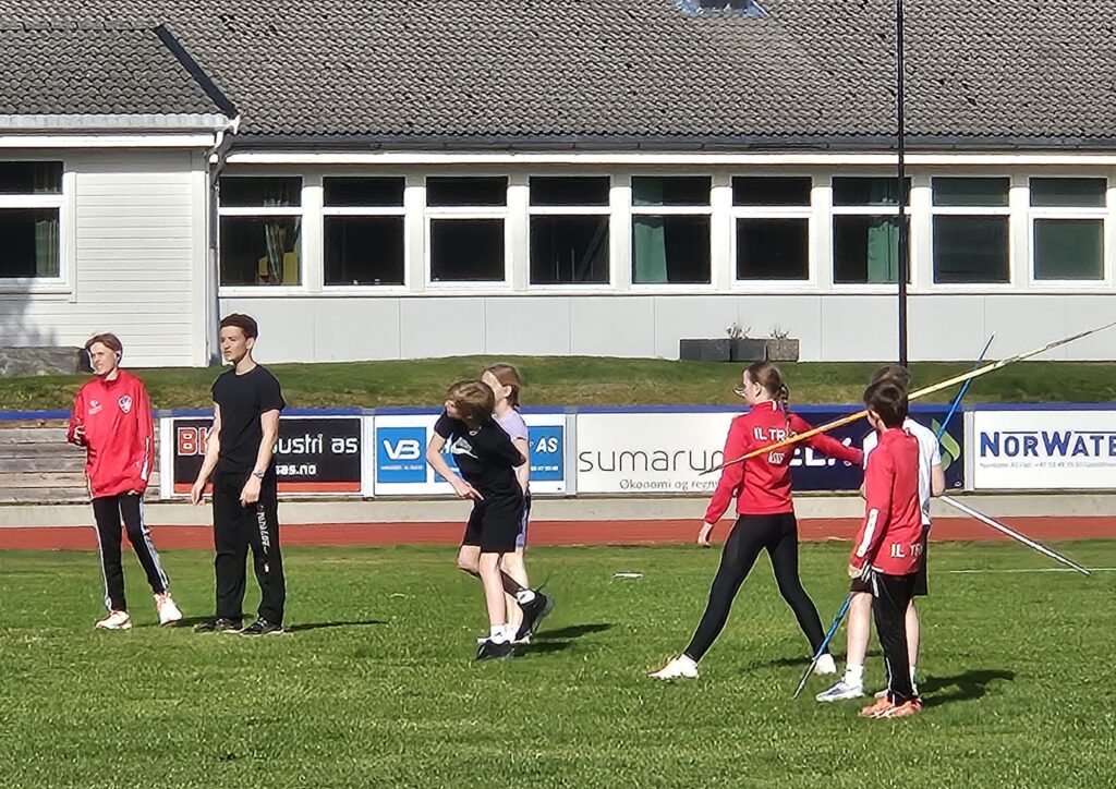 Friidrettsgruppa skipa til årets første seriestemne utandørs på Husnes stadion onsdag. Blant anna sto spydkast på menyen, og der fekk vi veldig god kasting. Mattias Skauge Griggs fornekta seg ikkje og sette ny pers med råsterke 43,52, nesten 5 meter lenger enn si gamle bestenotering. Mattias blir 15 i år og det er berre ein annan i landet i denne årsklassen som kan måle seg med slike lengder.