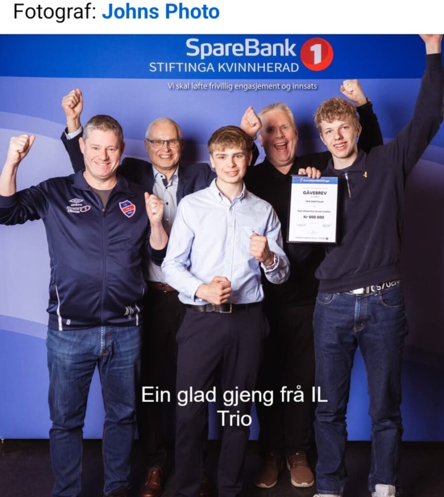 På 100 meter sette Sander Sæverud Jensen ny pers med 12,2, medan Ådne Opsanger-Tveit noterte 12,8. Dette er med manuell tidtaking, så vi gler oss til å få på plass elektronisk tidtaking. Tidlegare i veka fekk vi ei stor tildeling frå Sparebank 1-stiftinga Kvinnherad til bygging av tidtakarbu. Sander og Ådne var med på utdelinga på kulturhuset og tok i mot gåva.
